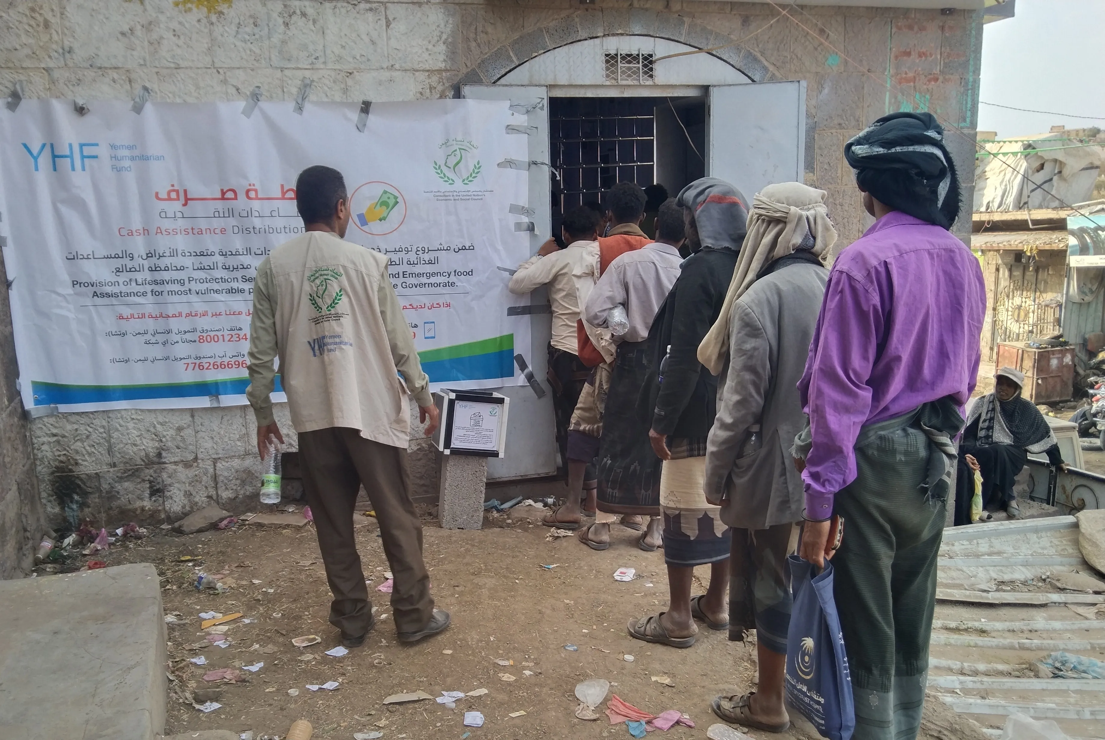ضمن انشطة مشروع "تقديم خدمات الحماية المنقذة للحياة، والمساعدات النقدية متعددة الأغراض، والمساعدات الغذائية الطارئة للفئات الأكثر ضعفاً في مديرية الحشاء محافظة الضالع " و الممول من صندوق التمويل الانساني (YHF) ، نفذ اتحاد نساء اليمن توزيع اربع دورات صرف متتالية منذشهر نوفمبر 2025 وحتى شهر فبراير 2026 من المساعدات النقدية غير المشروطة لعدد 215 أسرة مستفيدة تم اختيارها بدقة وفق معايير الضعف . حيث يشكل النازحين الغالبية العظمى من المستفيدين بنسبة 88% (189 أسرة)، مقابل 12% للمجتمع المضيف (26 أسرة)، حيث بلغ إجمالي الأفراد المستفيدين من كل دورة صرف 1,446 فرداً، من ضمنها 71 أسرة تعيلها نساء، مما يعكس التزام المشروع بالاستجابة المتكاملة والفعالة للتخفيف من معاناة الأسر المتضررة وتلبية احتياجاته الاساسية من الغذاء.